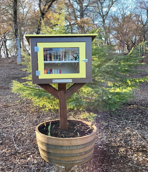 A Little Free Library is a free book-sharing box where anyone may take a book or share a book. You do not need to share a book in order to take one. Elda and Randy Wonders built this in 2022. Stop by and check it out at 12820 Moss Rock Drive.